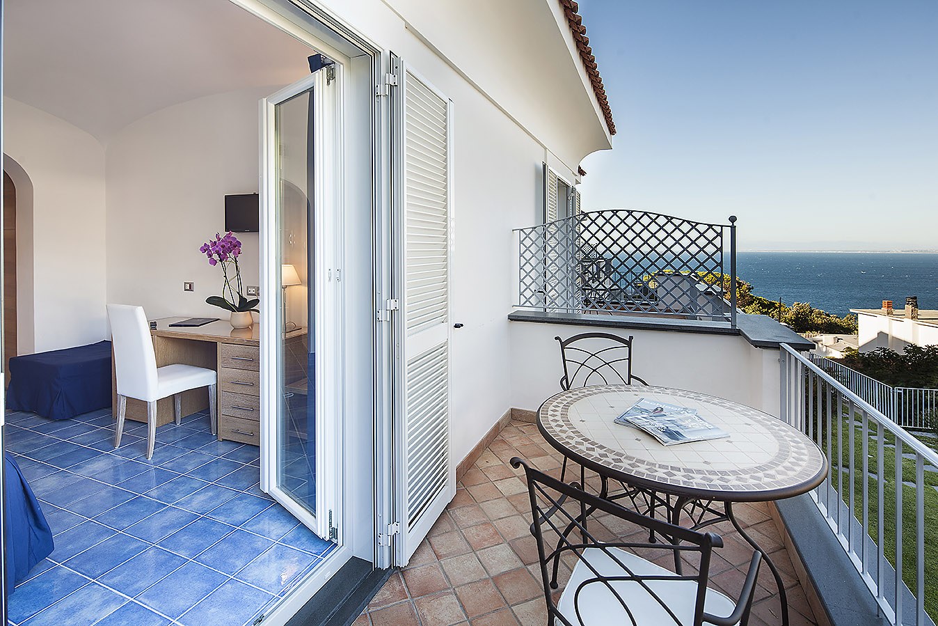 Spaziose e inondate di luce naturale, le Superior sono progettate per farti respirare l’atmosfera dell’isola fin dal risveglio. Oltre alla splendida vista laterale sul mare, due di queste camere vantano una grande vetrata panoramica che incornicia il Golfo di Napoli: il set perfetto per un momento romantico o per ammirare l’alba restando comodamente a letto.